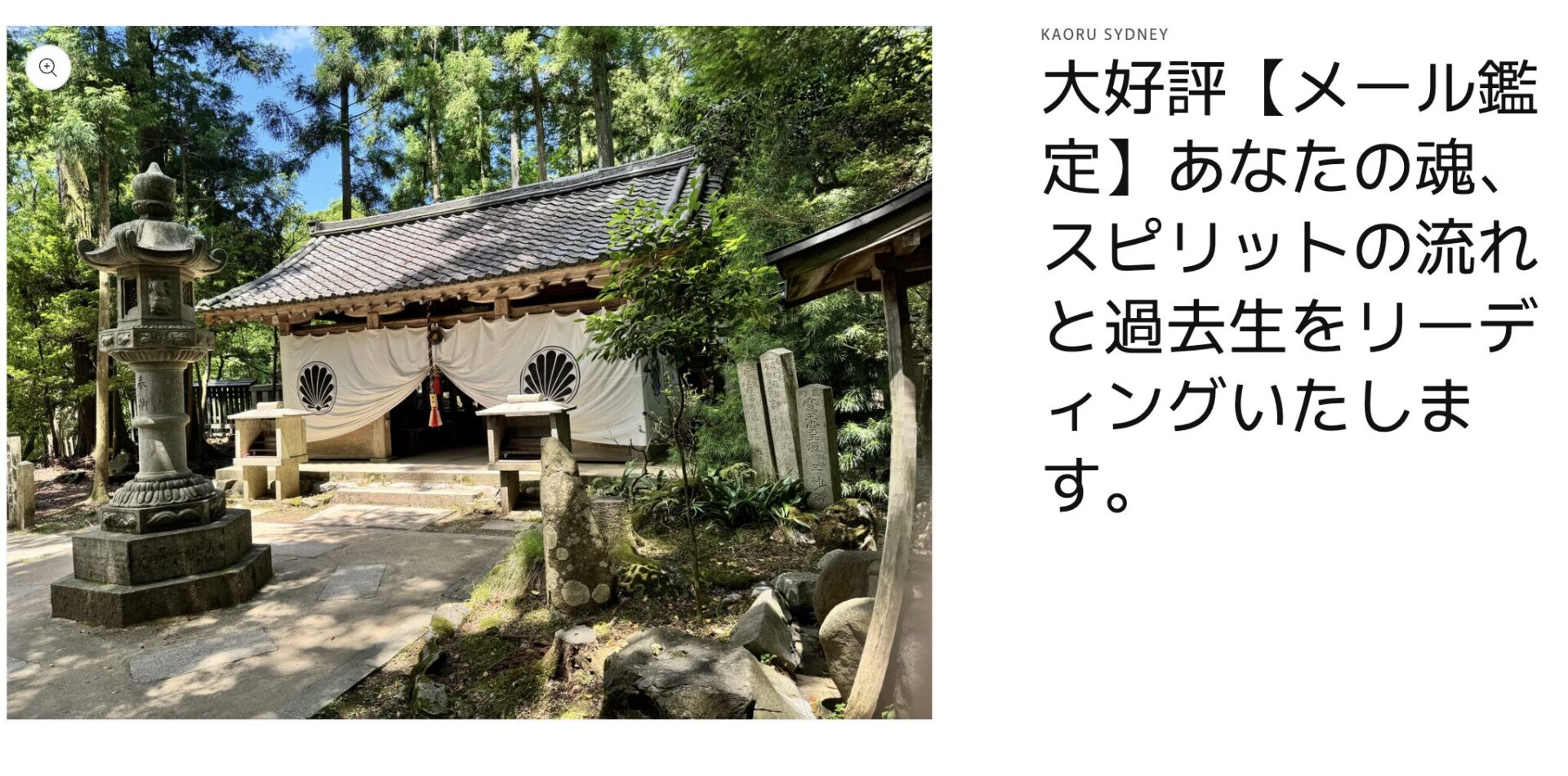 龍神様繋ぎで行った遠隔での神仏参拝は、その都度私にこんなドラマみたいな事が起こるなんて驚きと少し怖い感情の中まるで洗礼を受けている様でした。カオルさんの対応もついつい甘えて頼ってしまう程に柔らかく的確、そして迅速な対応ですから信頼できました。